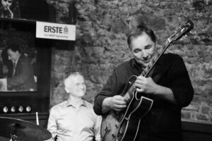 JL-Post-Text: Oft denke ich an wundersame Telepathie, denn sobald ich Markus Gaudriot an unserem grandiosen Bösendorfer höre, fällt mir der längst verstorbene Walter Hörler ein, der „solo“ oder im „Trio“ die Fans hellauf begeisterte. Zwei wahre Könner am herrlichen „Bösendorfer“, die sich leider nie kennenlernen konnten…. Markus Gaudriot (p), Harry Putz (b), Joris Dudli (dm) , Martin Spitzer (g) & Patrizia Ferrara (voc) paßt mit ihrem Talent zu dem großartig swingenden Quartett.
