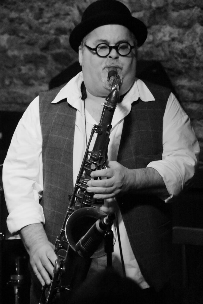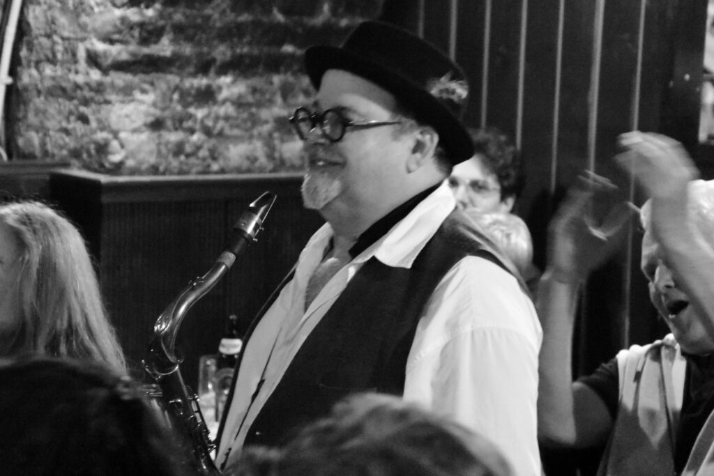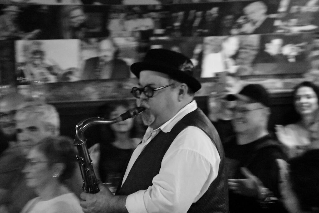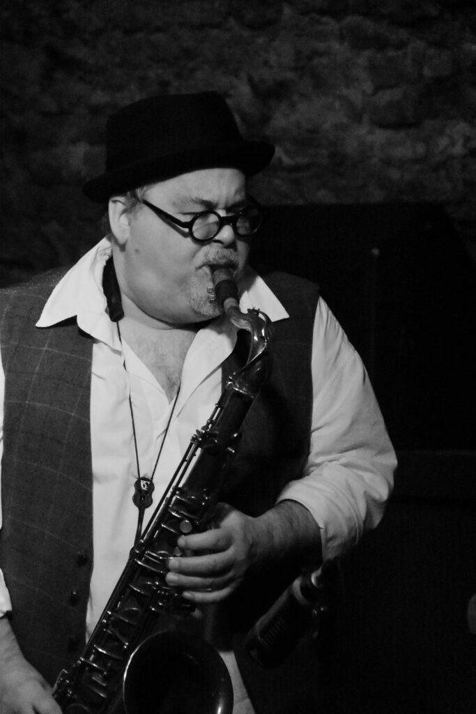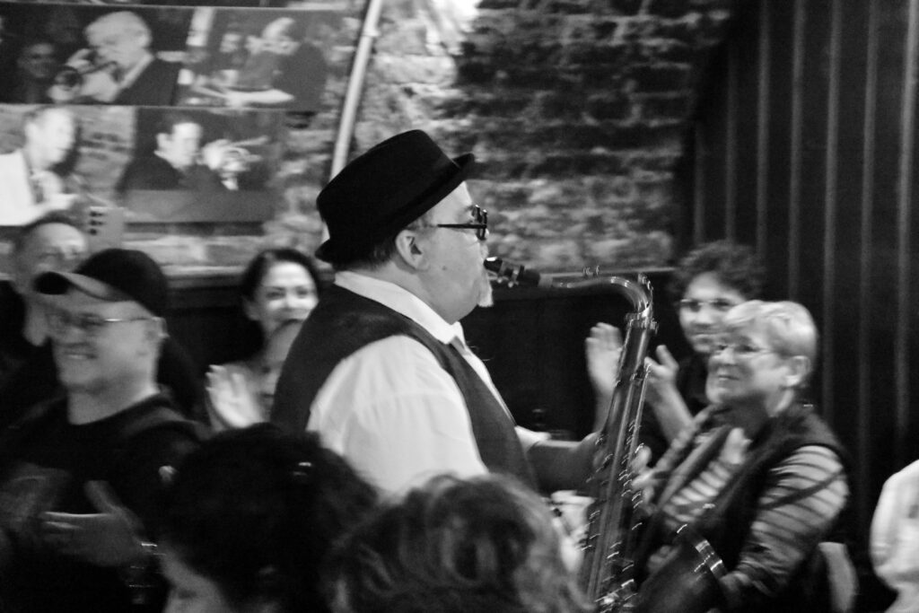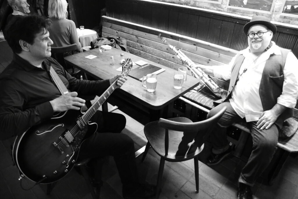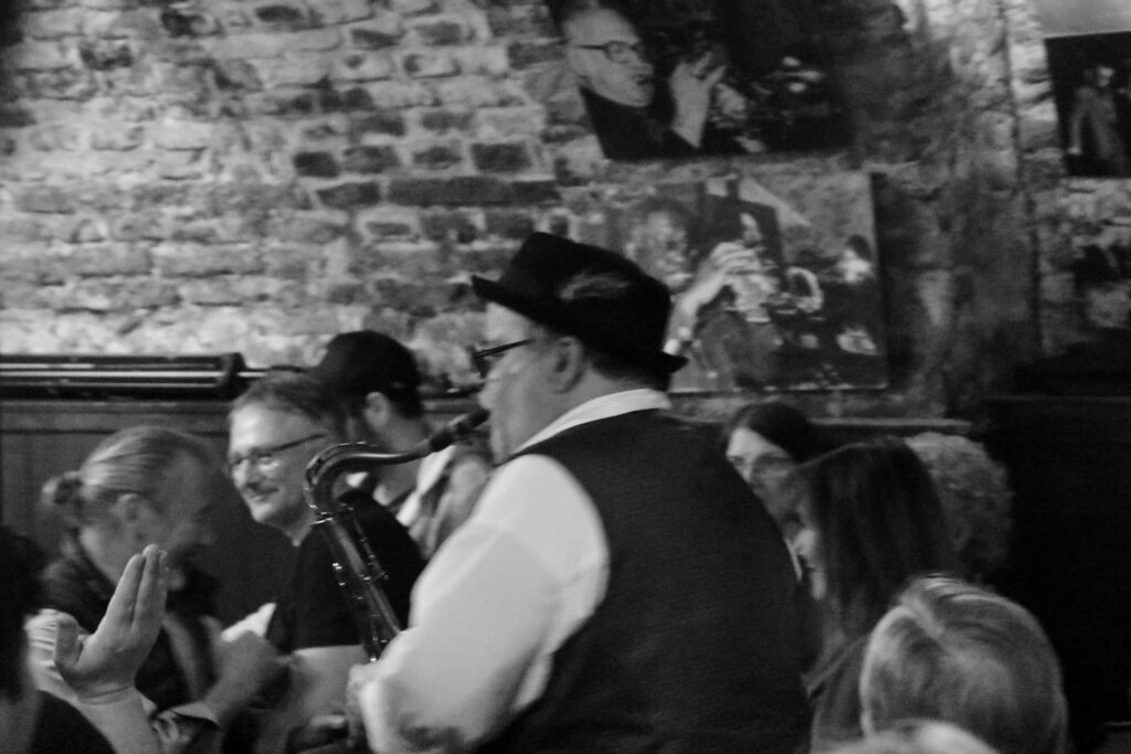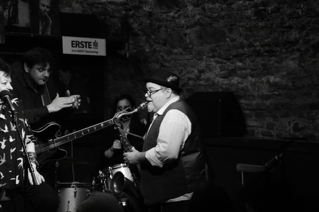 Wieder einmal ist mir Joachim mit dem ausbezahlten (!) Bösendorfer an den Händen nicht vor die Linse gehüpft. Aber ich darf ihn zitieren als er Martin Winning dem Publikum näher vorstellte: „Damit Sie ein wenig einordnen, können WER das ist, der hier im Jazzland mit uns für Sie musiziert. Martin Winning war unter anderem in der Band von Van Morrison!“ und – wofür ihn Joachim ganz besonders beneidet: „Martin hat bei der letzten Plattenaufnahme von Ray Charles mitgewirkt!“ – Cheers Mate!