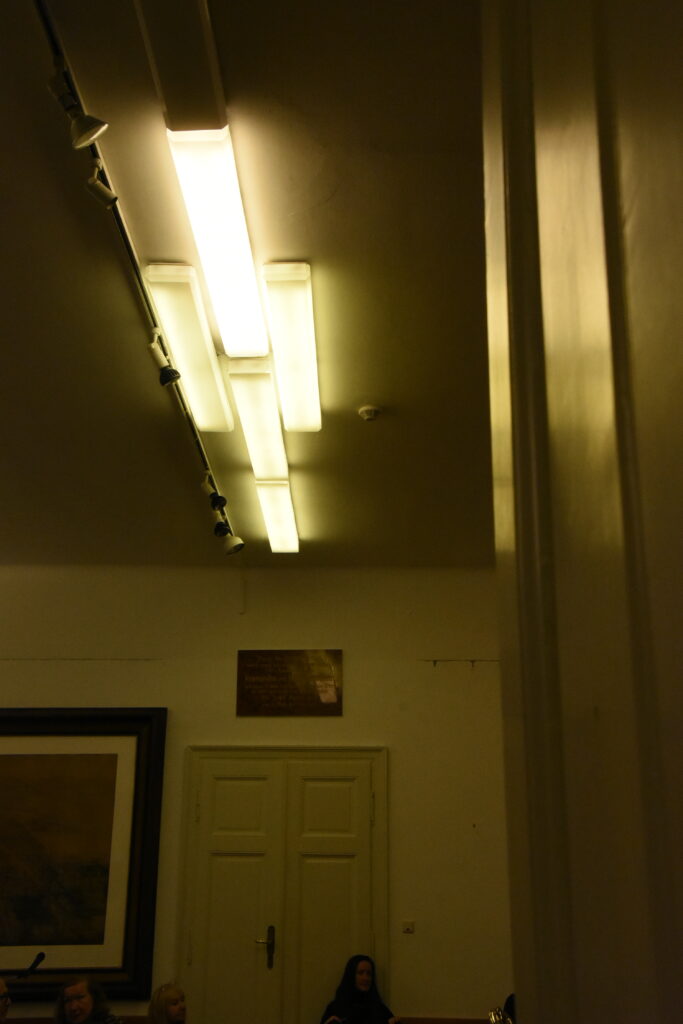 Ob die Spots in der Lichtschiene eine bessere Stimmung geliefert hätten als die Neonbalken? Vielleicht … – funktionieren sie überhaupt?