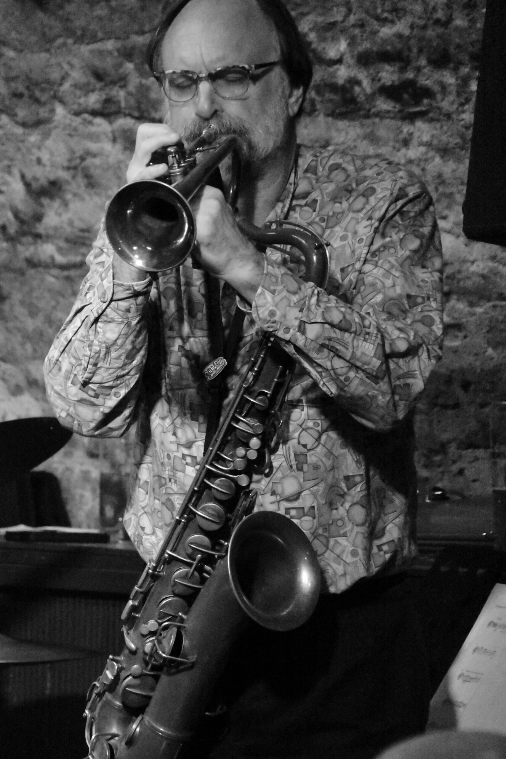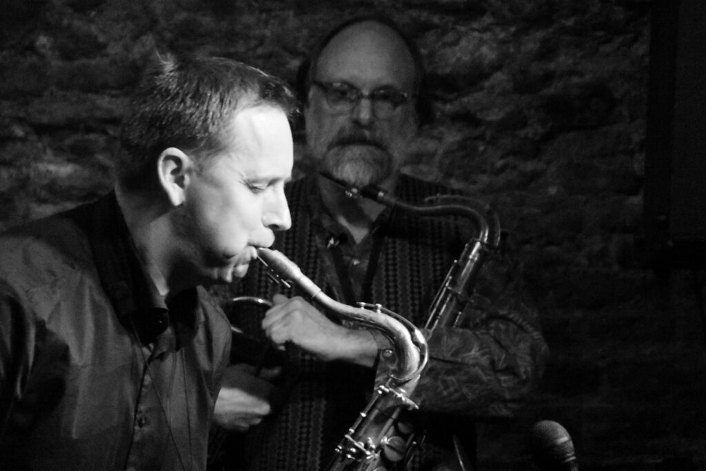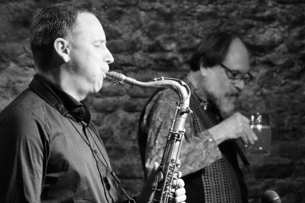 Da meine Kamera und ich an beiden Abenden da waren, erlaube ich mir die Fotos aus beiden Abenden hier zu vermischen. Der Einsteiger, Bernie Wiesinger am Tenorsaxophone, war nur am Donnerstag dabei. Genauso wie Scotts ganz neues Instrument … aber dazu später.