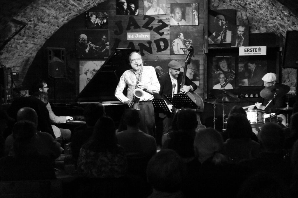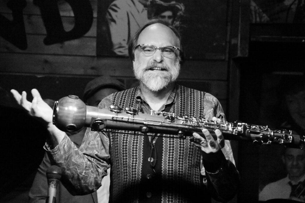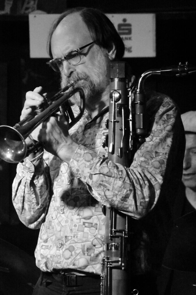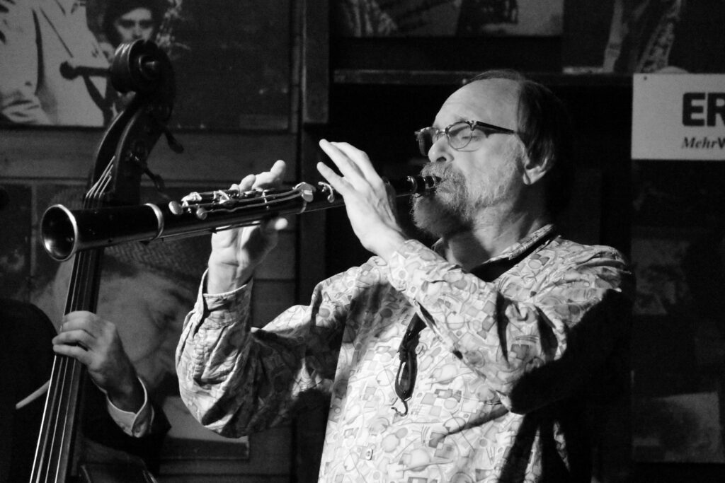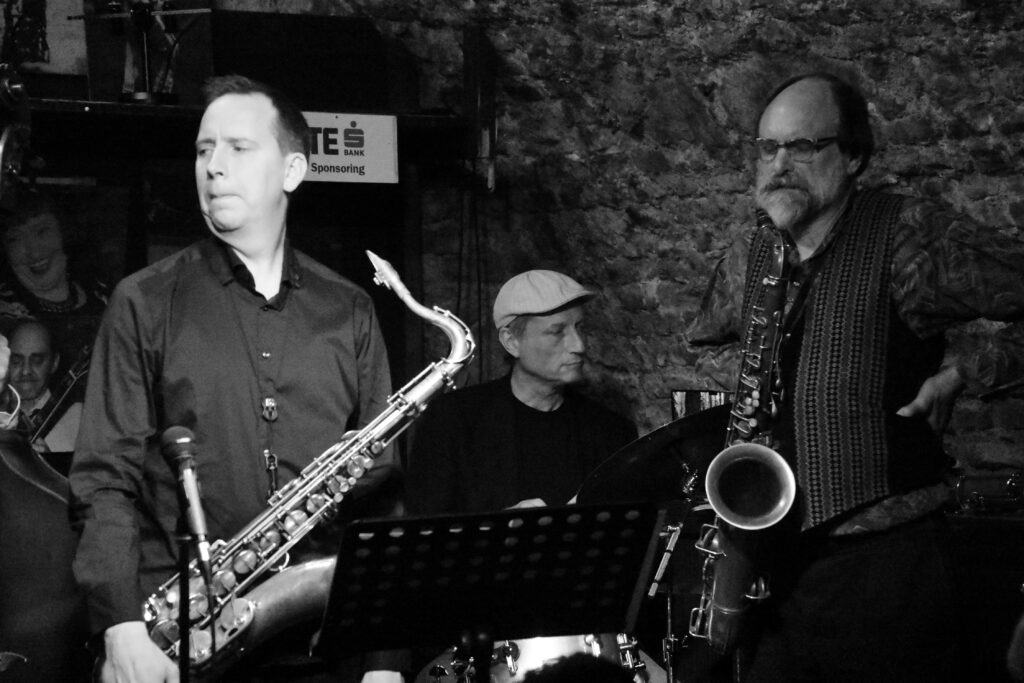 JLP-Text: Im März 2002 stand der Multiinstrumentalist Scott Robinson im Rahmen der 30-Jahre-Jazzland-Feierlichkeiten mit „THE JAZZLAND SWING ALL STARS“ erstmals auf unserer Bühne. Jetzt, 24 Jahre später, freuen wir uns sehr, dass wir unseren Freund mehr oder weniger regelmäßig bei uns im Keller unterhalb der Ruprechtskirche präsentieren können. Stilistisch bewegt sich Scott zwischen allen Spielarten des klassischen Jazz (von Ken Peplowski bis Lionel Hampton und Warren Vaché bis Buck Clayton) und den zeitgenössischen Formen unserer Musik (Paquito D’Rivera bis Bob Brookmeyer und Phil Woods bis Bill Holman). Wir hören diesen unfassbar liebenswerten Musiker zusammen Mi. und Do. mit Matyas Bartha p, Danny Ziemann b & Christian Salfellner dm